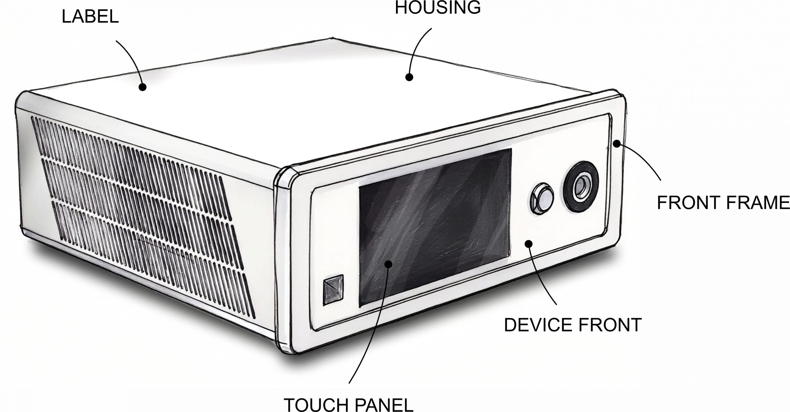 Device front: We supply a customized housing front with your company logo, your own device designation, and/or your individual design. On request, we can offer you the design of the front foil according to your design specifications and your CI.